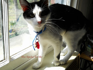Her see me do this and her ask, Kitty sweetie, what are you thinking about? I just git sad, but her cuddle and love me and everything gets right just like that, her make it right...I no worry no more because my Mummy is here to love me! Her so special! I try not to take advantage but, sometimes I can not help it...after all, I am a cat don't you know! I so happy for my nice home and I can do a lot (and get away with it), eh...I mean, and her lets me!